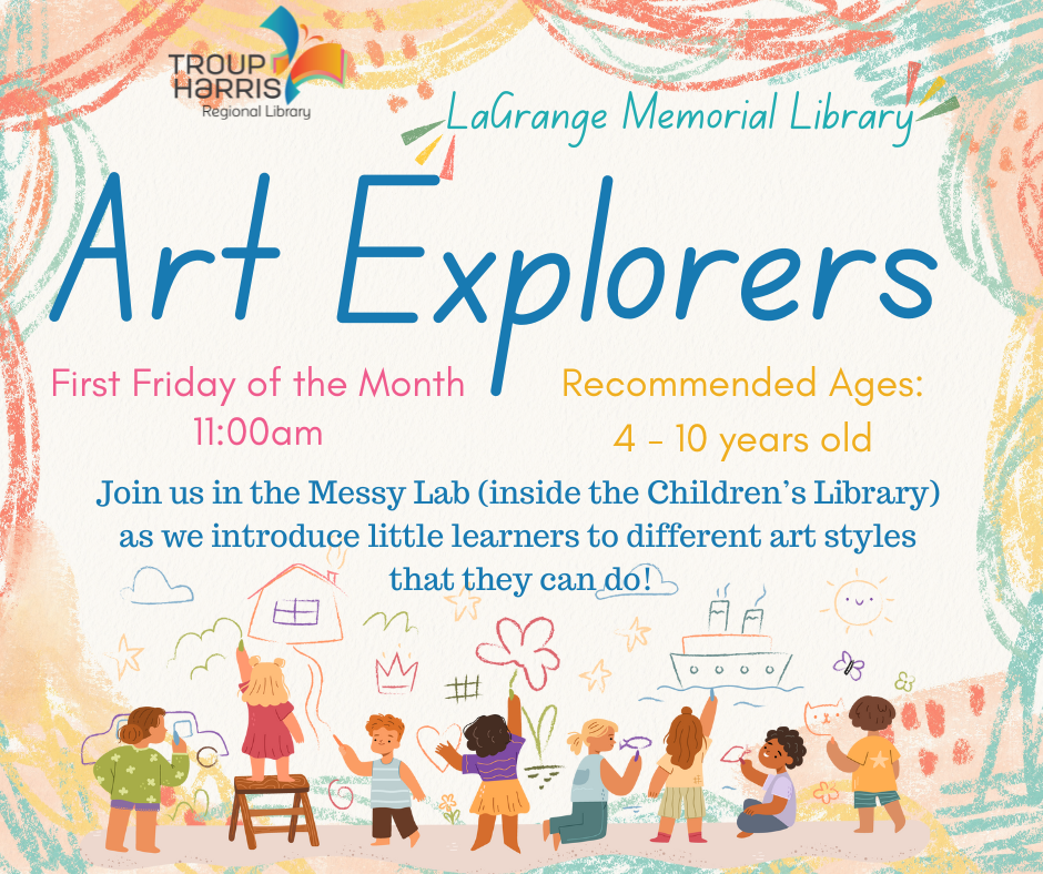Join us in the Messy Lab (inside the Children's Library) as we explore different art styles and techniques that kids can do!