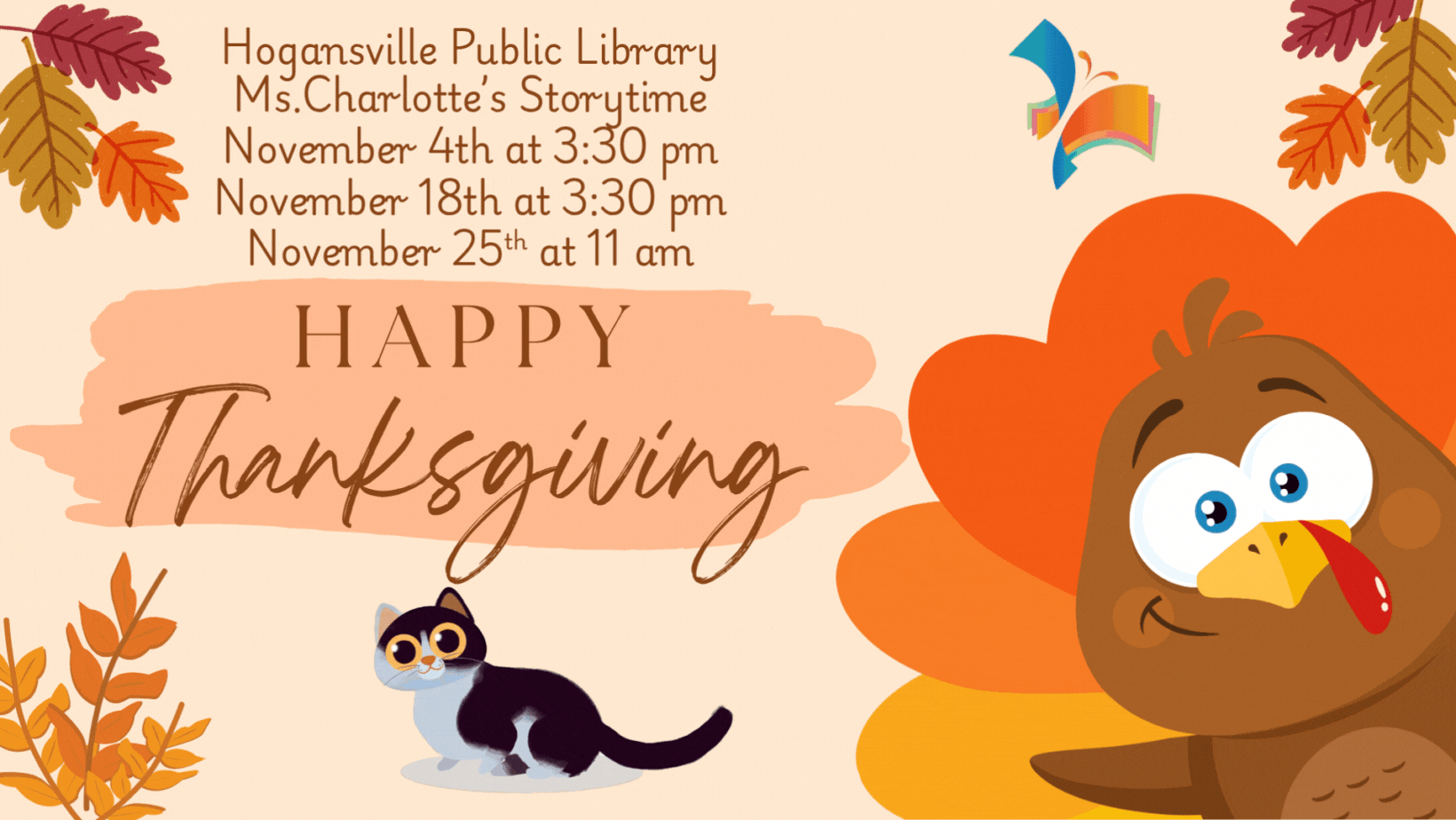 We'll be singing songs, listening to books about Fall, and making a craft. We'll learn an ASL word from this season at each storytime! Come by and start having fun about the season!