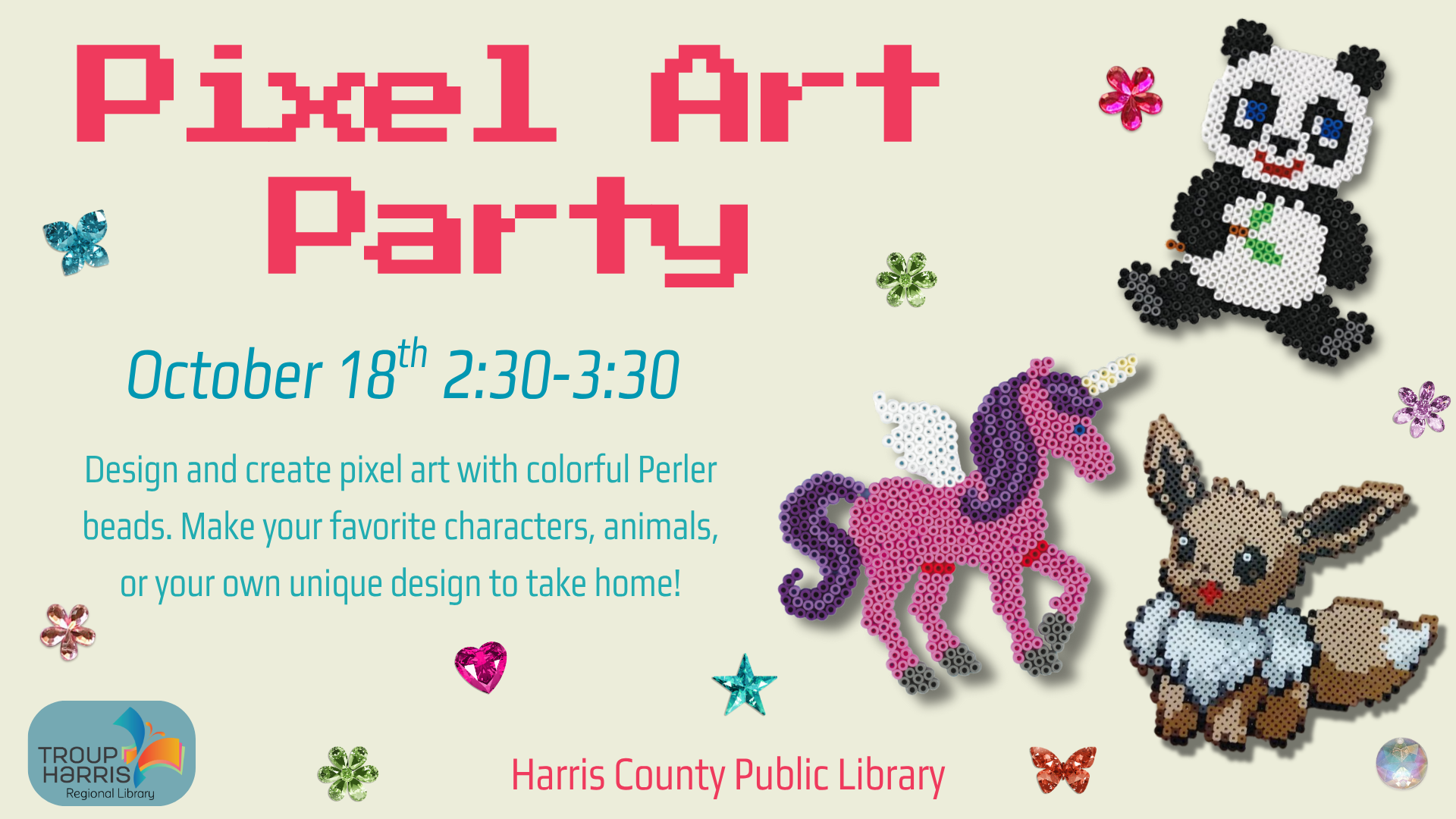 Kids ages 6-11 are invited to design and create their own pixel art masterpieces using colorful Perler beads. Choose from your favorite video game characters, animals, or create a design of your own. We'll have everything you need, including beads, pegboards, and irons to melt your creations into fun designs to take home.